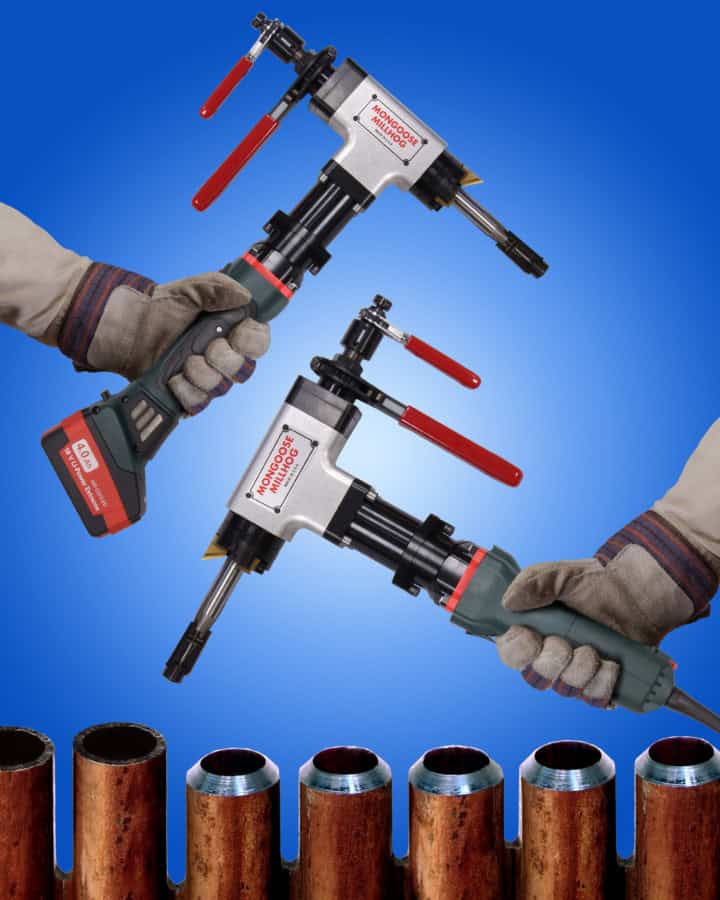 The MG-175 mandrel kit is designed for the Mongoose gear head and will allow the tool to fit in tube with 0.625" (15.9mm) I.D. This kit comes with a specific cutterhead that will fit the smaller 0.625" (15.86mm) mandrel, along with the draw rod assembly. Clamping range of the Mandrel Kit is 0.625" (15.9mm) I.D. - .780" (19.8mm) I.D.